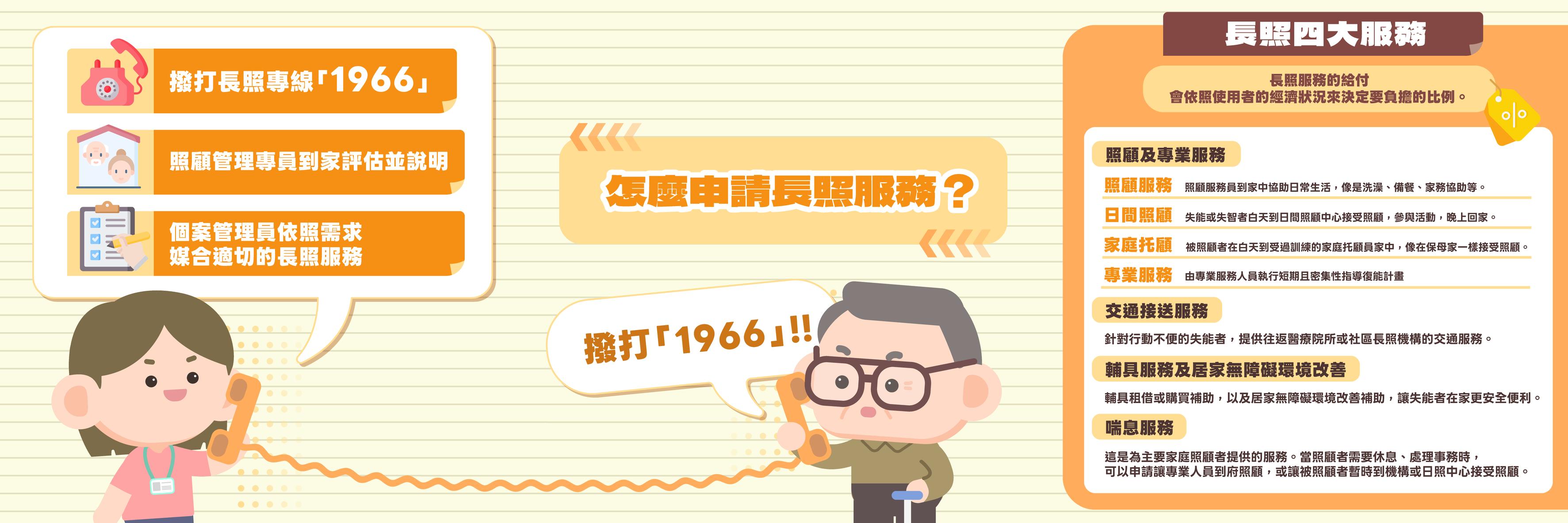 透過語音選單,將轉接到縣市的照管中心,中心人員會協助了解是否符合申請資格。只要符合資格,中心將派照管專員到家評估,依照顧對象的需求量身定做照顧計畫,並與家屬說明政府補助額度,找到最合適的長照資源。